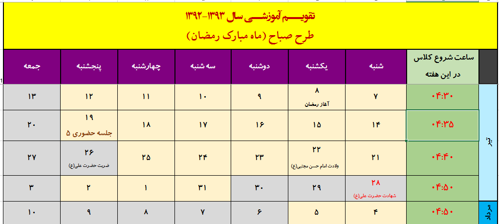 با توجه تذکر برخی دوستان، ساعات کلاس در ماه مبارک به صورت هفتگی مشخص شده است.